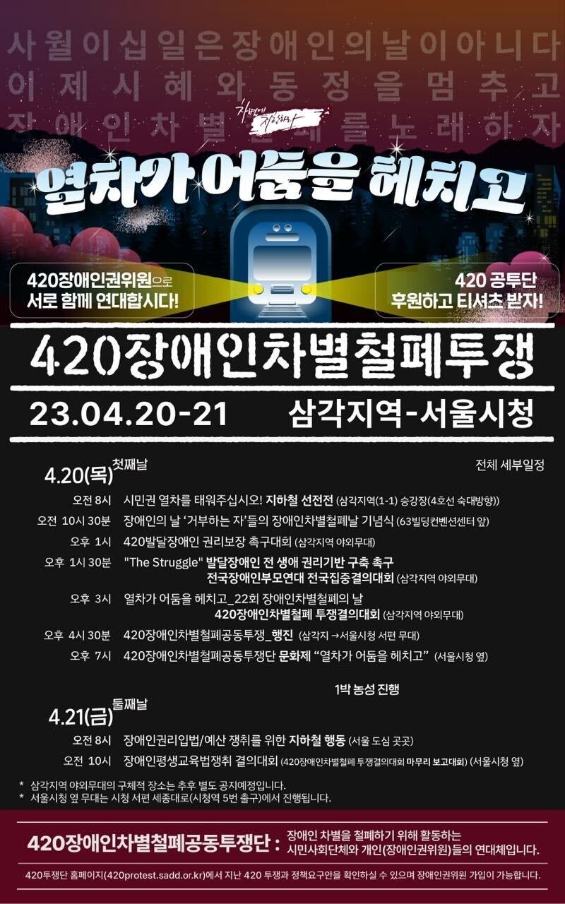 420 장애인차별철폐 투쟁결의대회에서 노노공도 함께 노래 부릅니다! 420 함께 해요!